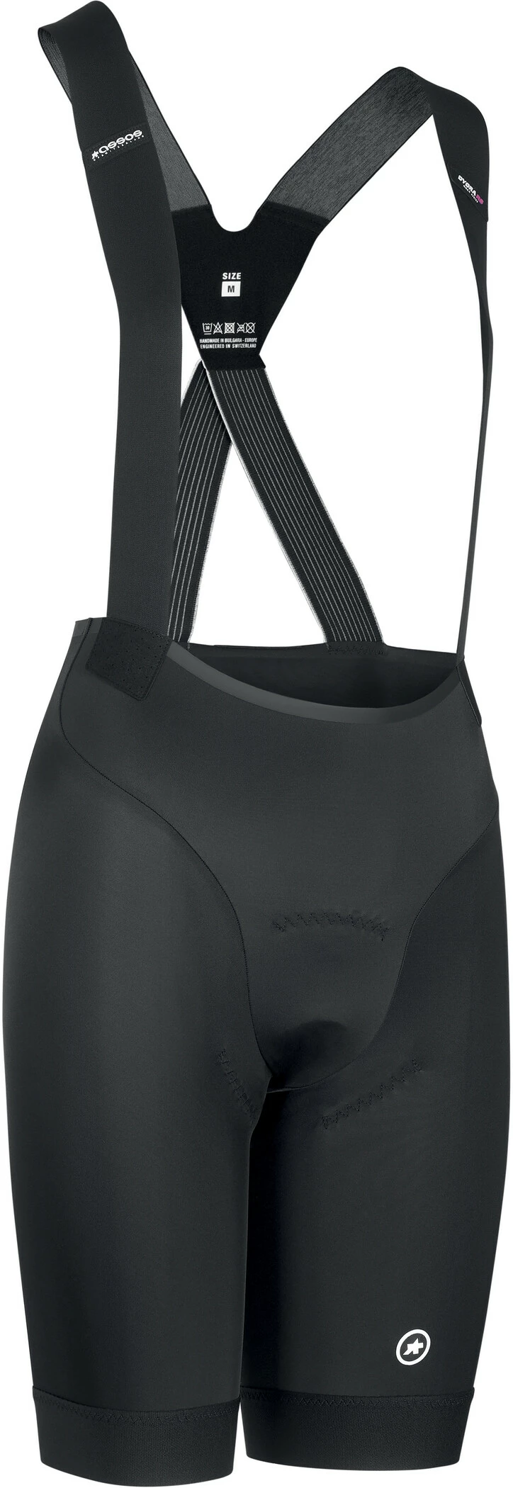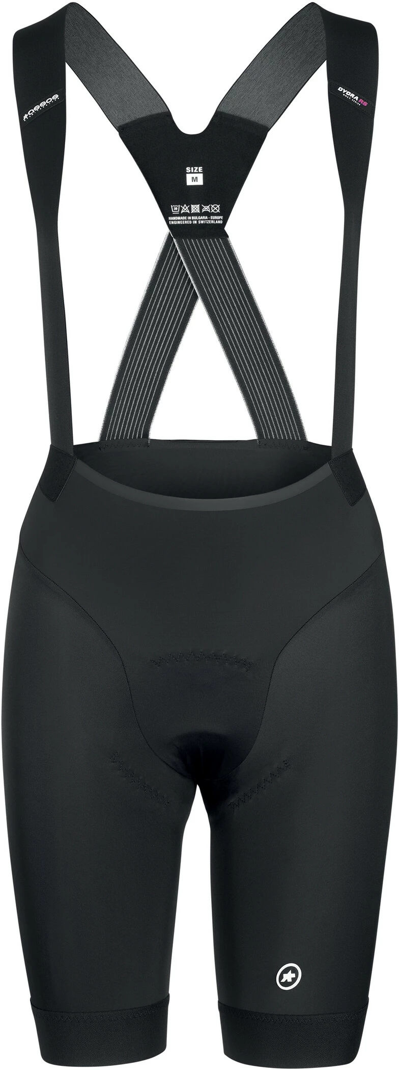 Det magnetiske spænde er blevet erstattet foran med konventionelle remme, som er placeret længere ude, så de passer til enhver kropsform. Desuden danner den åbne linning ved hoften -zeroWaist – og Ultralight Leg Grippers den blødeste overgang mellem din krop og stoffet. Assos har brugt deres DYORA RS-polstring i den populære basaltfarve til polstring. Den er udstyret med et superAir microShock skumlag, 3D-vaffeloverdel og ASSOS’ eksklusive goldenGate-teknologi.